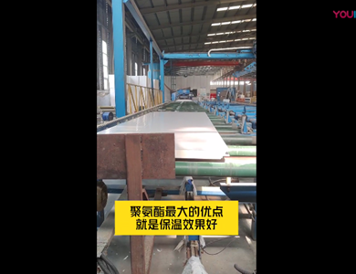 我們公司引進意大利賽浦連續(xù)生產(chǎn)線,采用了六組份在線工業(yè)微機自動操作(SIEMENS)混合澆注技術。生產(chǎn)流程分為開卷覆膜—壓制成型—鋼板預熱—高壓發(fā)泡—高溫固化—鋸切—板材冷卻—碼垛—自動打包等功能與一體的自動化生產(chǎn)線,年生產(chǎn)能力為130萬平方米。