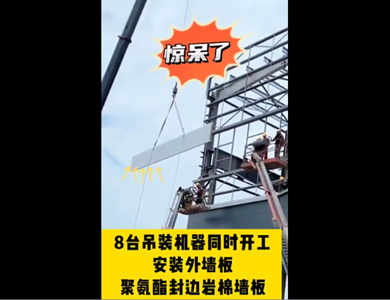 聚氨酯封邊巖棉墻面板8臺(tái)吊裝機(jī)同時(shí)施工