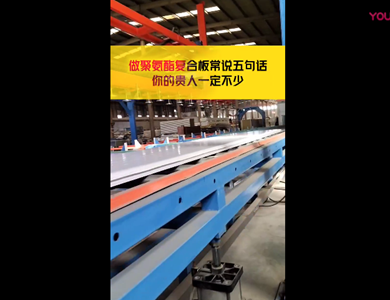 我們公司引進(jìn)意大利賽浦連續(xù)生產(chǎn)線,采用了六組份在線工業(yè)微機(jī)自動操作(SIEMENS)混合澆注技術(shù)。生產(chǎn)流程分為開卷覆膜—壓制成型—鋼板預(yù)熱—高壓發(fā)泡—高溫固化—鋸切—板材冷卻—碼垛—自動打包等功能與一體的自動化生產(chǎn)線,年生產(chǎn)能力為130萬平方米。